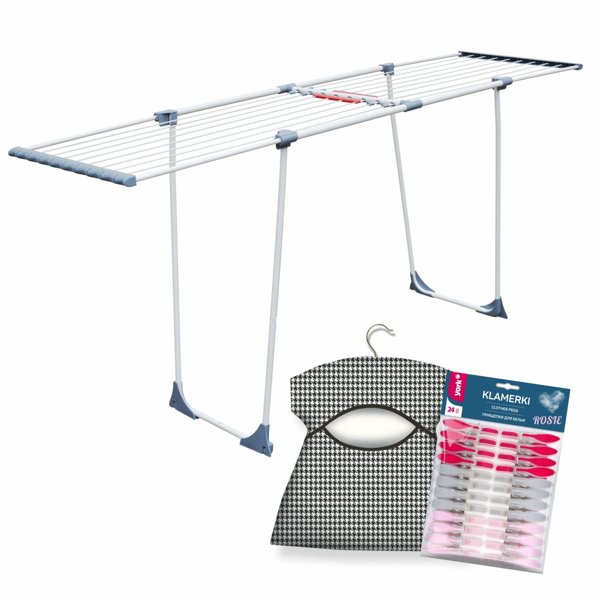 Suszarka YORK Family Star na pranie do ubrań bielizny składana teleskopowo 20 metrów powierzchni! + worek na klamerki + klamerki ROSIE 24 sztuki
