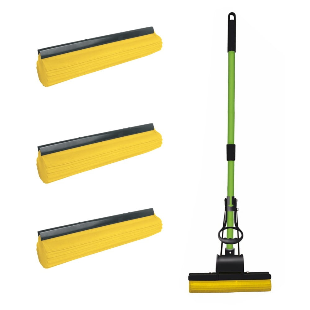 Taniej w zestawie!Mop gąbczasty wykonany z PVA, świetnie wchłaniania rozlany płyn. Usuwanie wody z mopa bez użycia rąk, dzięki wyciskaczowi.